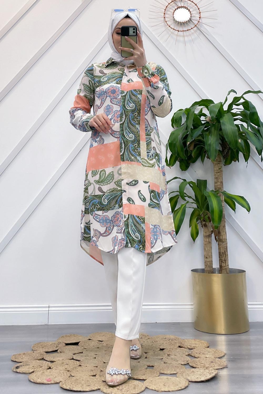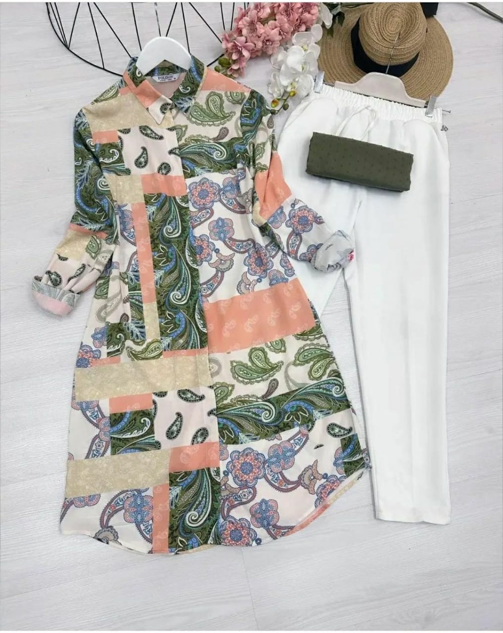• FLOWER PRINT GREEN RAYON TOP WITH CREAP PLAZZO